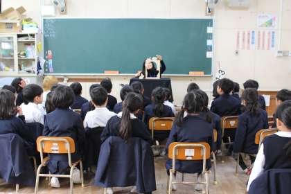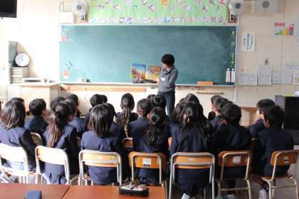 大阪市立中央図書館のボランティアさんによるおはなし会を行いました。今日は1〜3年生がいろいろなお話を聞かせてもらいました。