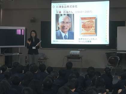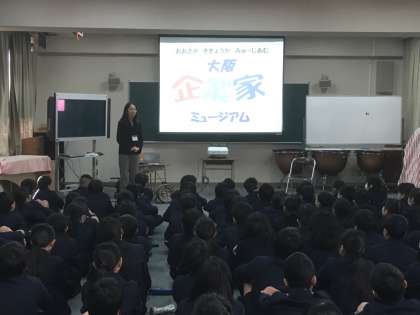 大阪企業家ミュージアムの方が来校し、6年生に出前授業をしてくださいました。大阪で活躍した企業家として「安藤百福」や「江崎利一」を紹介し、企業家として、人間としてどのように成長、成功したかを学びました。