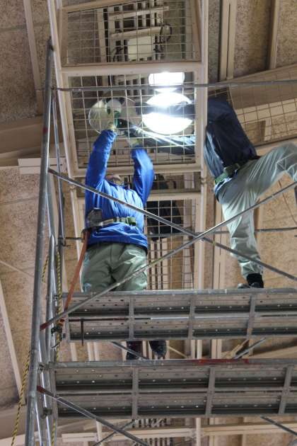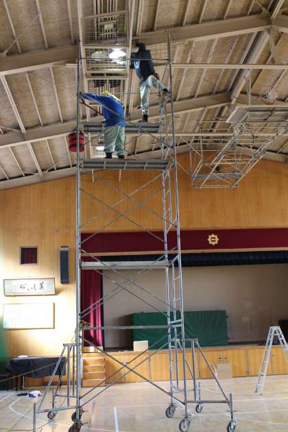 3月19日(月)の卒業式に向けて、講堂の照明を点検・交換しました。照明がつきにくいものは新しいものに取り換えたので、講堂内が明るくなりました。