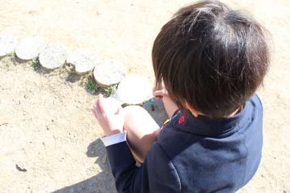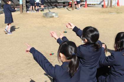 3年生が理科で「じしゃくのふしぎ」を学習しています。今日は運動場で、磁石を使えば方位が分かることを調べました。