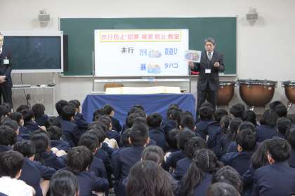 難波少年サポートセンターの方々が臨時講師となって、5年生に「非行防止教室」の授業をしてくださいました。