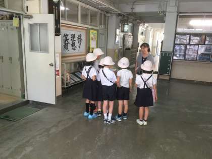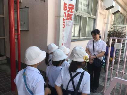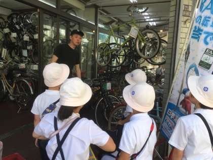 日吉幼稚園や堀江中学校、自転車屋さんで話を聞いています。