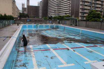 明日からのプール水泳に向けて、プール清掃を行いました。とてもきれいになりました!