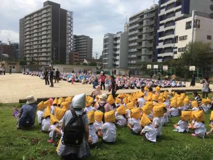 学校では、昨日予定していた日吉幼稚園との合同避難訓練を行いました。