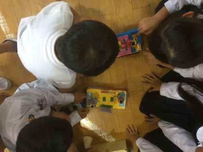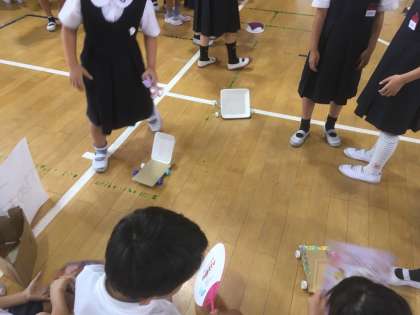 2年生がいろいろなおもちゃを作り、1年生を招待しました。