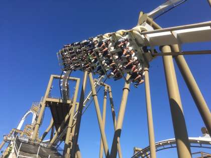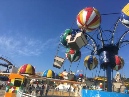 暖かい日差しが注いでいる中、子どもたちは、アトラクションで楽しんでいます。