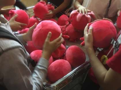 買い物では、なぜかたこのぬいぐるみに人気が集中していました。
