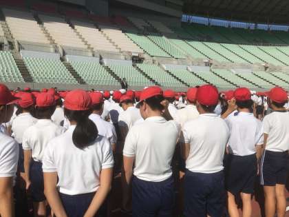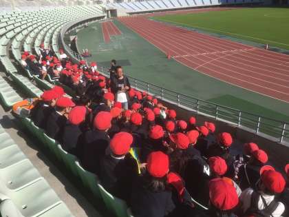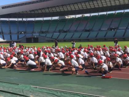 長居スタジアムで、6年生が西区のスポーツ交歓会に参加しています。