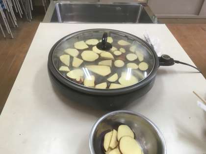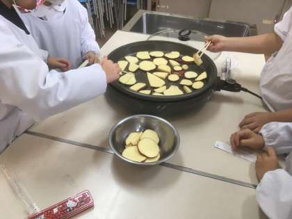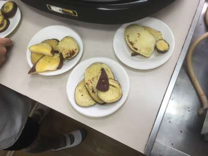 2年生が収穫したサツマイモをホットプレートで調理し、おいもパーティーをしました。
