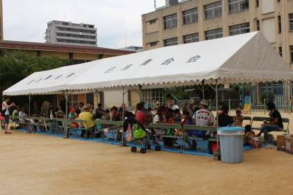 今日は親子プールがありました。PTA、地域の方々のご協力のもと