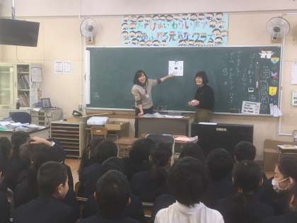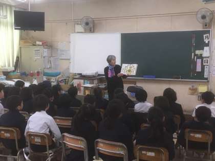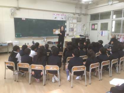今日は、低学年を対象に中央図書館のボランティアの方々による読み聞かせがありました。