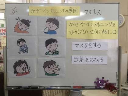 低学年と高学年の指導内容は、少し違いますが、インフルエンザウィルスのことを知り、予防に気をつけることです。