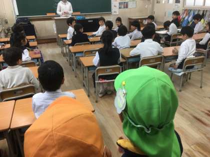 4月から1年生になる保育園の子どもたちが、1年生の学習の様子を見学に来ました。
