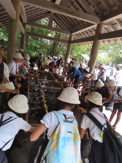 伊勢神宮とおかげ横丁の見学に行きました。樹齢千年を超えている杉の木が至る所に高々とそびえ立っていました。