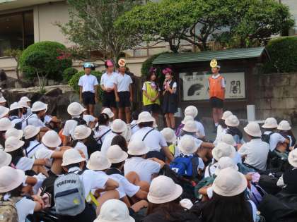 退所式セレモニー係のみなさんが前へ出て、進行を担います。