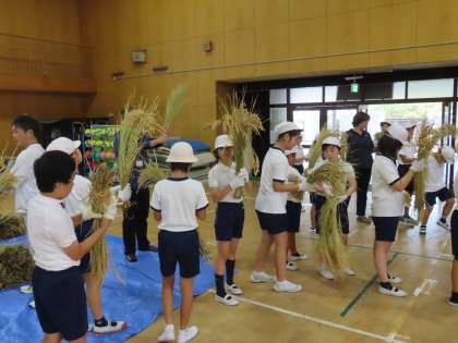田植えから、生き物観察、収穫をこれまで行い、今回、脱穀を体験させていただきました。