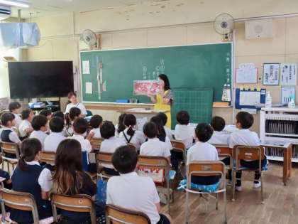 読み手の方の熱が子どもたちに伝わっているのがよくわかります。子どもたちが読み手の方と一緒になって読んでいるクラスもありました。そういう仕掛けの本だったのでしょうか。とても盛り上がっていました。