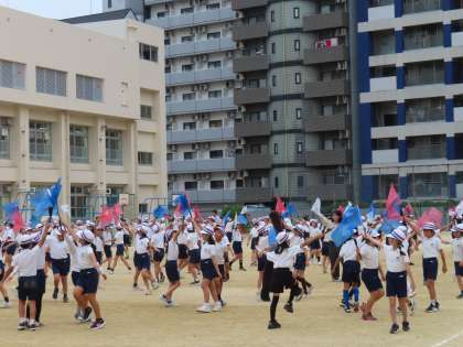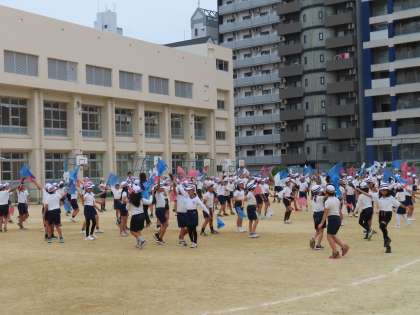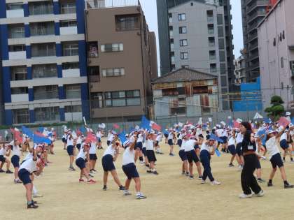 大阪・関西万博のテーマソングに合わせてリズミカルにダンスをしています。