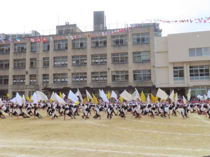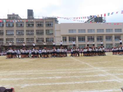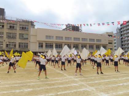 組体操については、技の内容を十分に検討し大阪市の指針に沿った技を選びました。体操をしている人、友だちを応援している人、6年生全員の気持ちがひとつになって本番は最高の表現をすることができました!