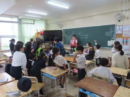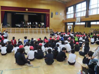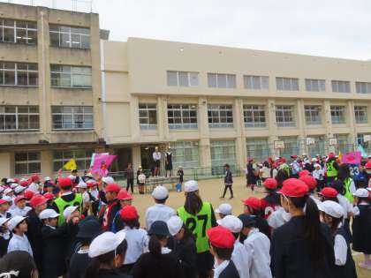 ベストフレンド班1班から10班が講堂で、11班から20班が各教室で、21班から30班が運動場での活動です。