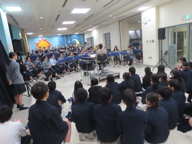 吹奏楽部の練習場所は地下にありました。すてきな歓迎演奏を聴かせてくれました。
