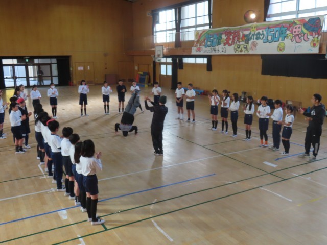 世界的な活躍をされているダンサーの技を見て、子どもたちの大きな歓声と拍手で盛り上がりを見せていました。