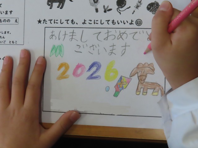1年生が年賀状のイラストやあいさつ文をデザインしました。