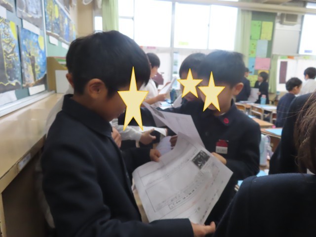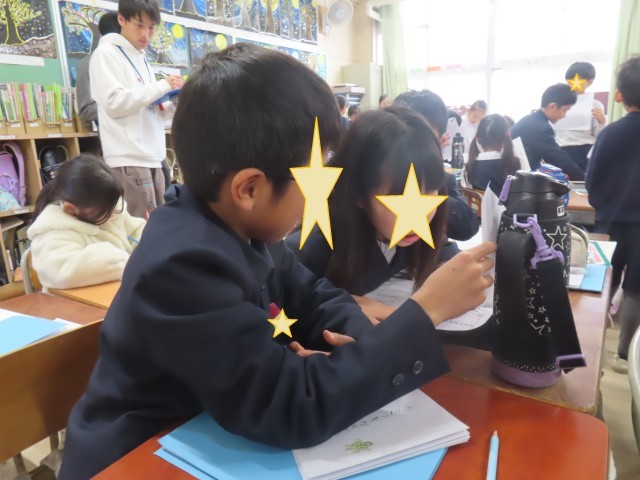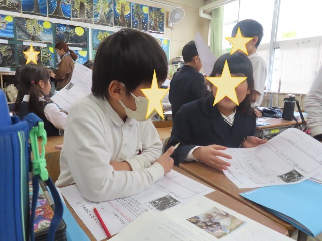 自分の考えを隣の席の人に伝えあい、そのあとは立ち上がってほかの人とも意見の交流を行いました。