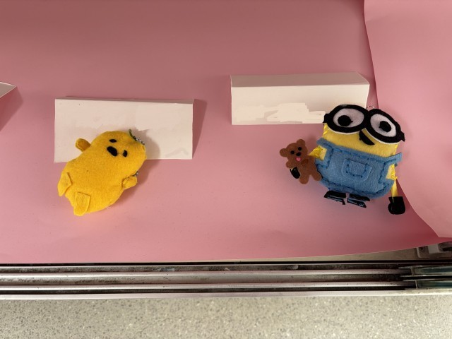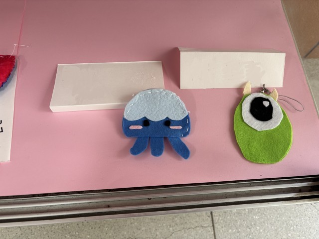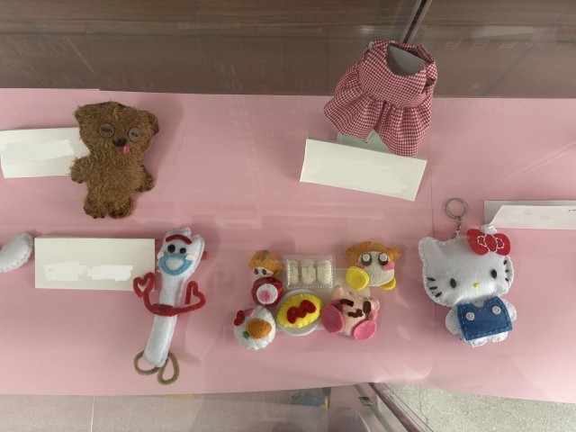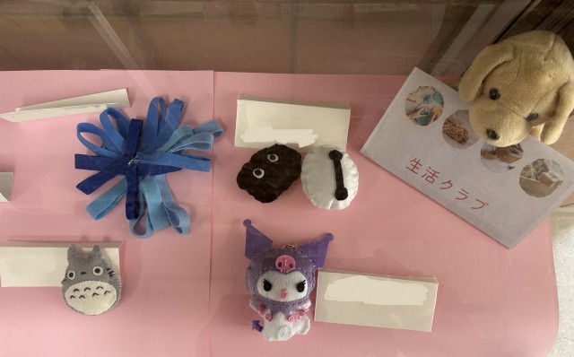 手芸クラブのみなさんの作品が飾られています。