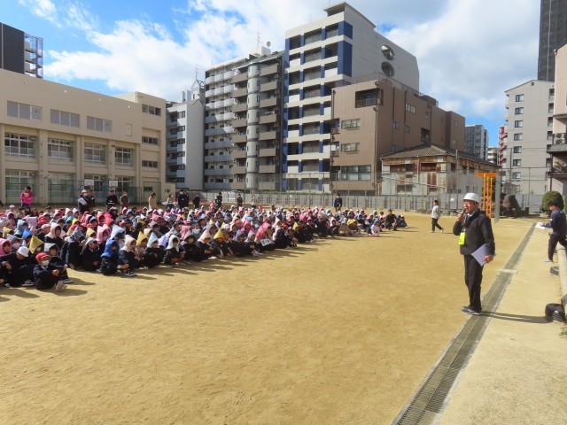 すると、運動場で遊んでいた子どもたちは教室には戻らず、自主的に運動場の真ん中に集まって他の子ども達が運動場に降りてくるのを待っていました。