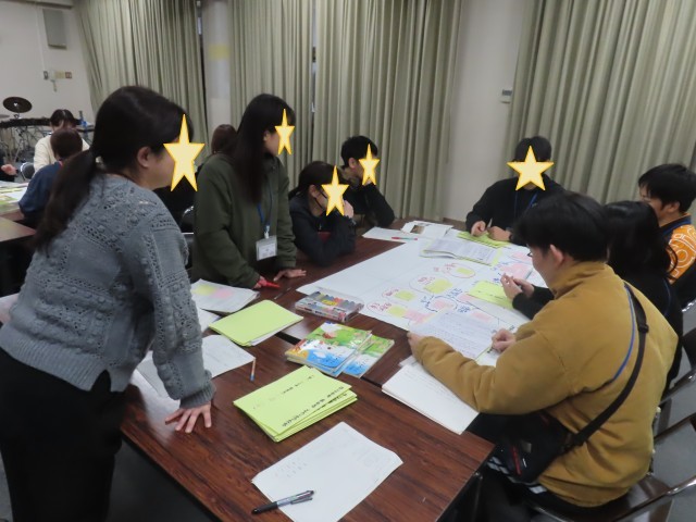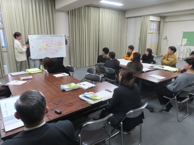 授業の後は研究討議会を多目的室で行いました。スクールアドバイザーの先生から成果とともに今後の授業改善に向けた助言をいただきました。