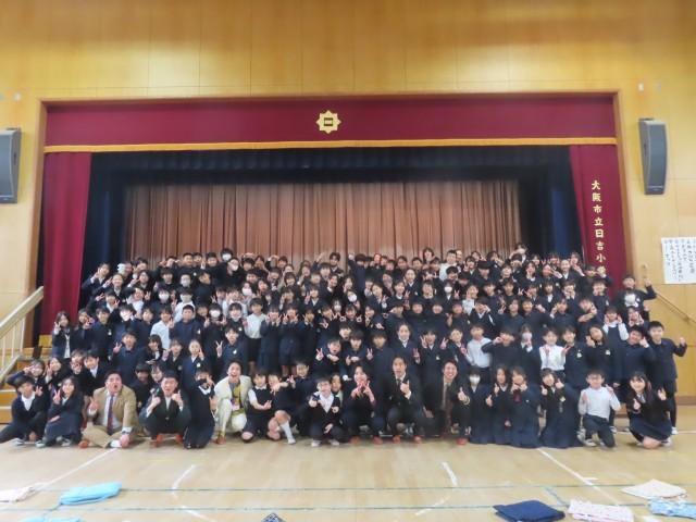 吉本興業の芸人さんが大勢来校し、午前中のワークショップのあと、午後から講堂で各学級の代表が舞台で漫才を披露しました。