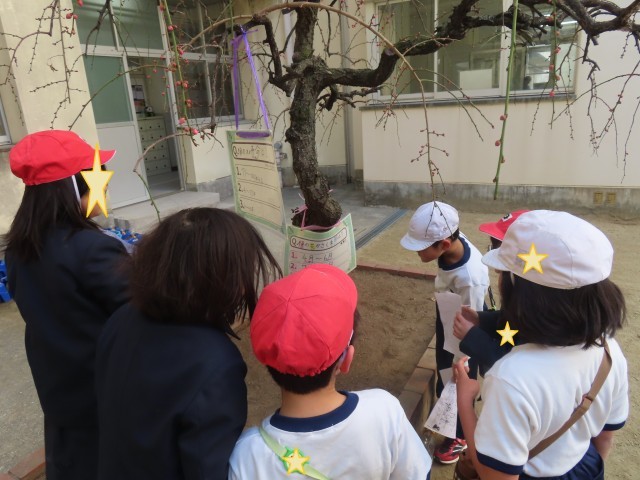 クイズに答えながら、「あ、梅の花が咲いている!」と気づくお友だちもいました。