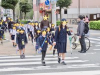 1年生は初めての地域別の集まりなので、6年生が手をつないで送り迎えをしました。