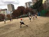 今日、1年生が日吉幼稚園の園児とたこあげ交流を行いました。 たこを持って離す...