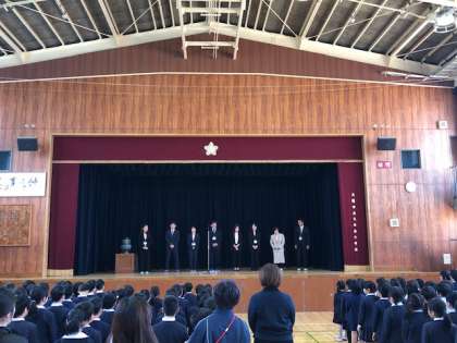 今日は、平成31年度「着任式」「対面式」「始業式」を講堂で行いました。