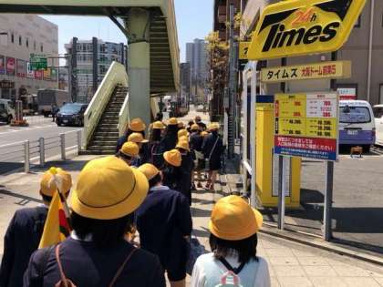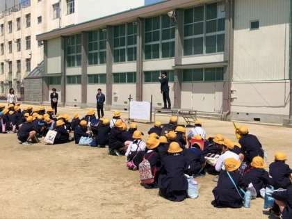 班長は入学した新1年生の手を優しくひきながら、時折後ろを振り返り、低学年の歩く速さに合わせて歩いていました。また後ろから「車来たよ」、「もう少し前詰めよう」などと声をかけている児童もおり、安全に下校することができていました。