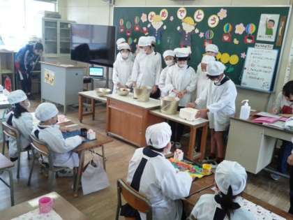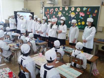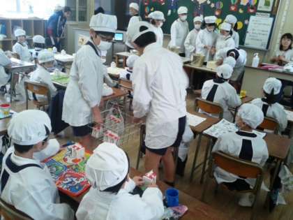 昨日から6年生が1年生の給食のお手伝いに行ってくれています。
