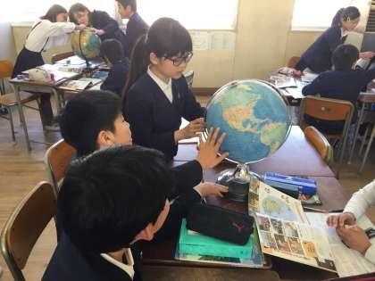 国語科では、「だいじょうぶだいじょうぶ」の登場人物の思いを込めた音読の方法考え、グループで聞きあう活動をしました。社会科では地球儀を使って世界旅行へ出発、どんな国に行ってみたいか考えグループのみんなで感想を交流しました。地球儀の上で世界旅行をしながら大陸や海洋の名前も学習しました。音楽科では、津田先生による歌唱指導を受けました。歌う時のポイントを具体的に教えていただきました。