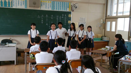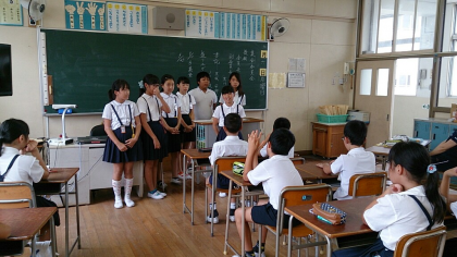 集会委員会の教室をのぞくと、新しく選出された5年生の副委員長が、就任のあいさつをしていました。