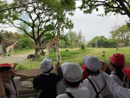 お天気にもめぐまれ、1、2年生は全員そろって天王寺動物園へ行ってきました。