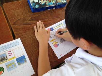 お手本をよく見て練習しています。