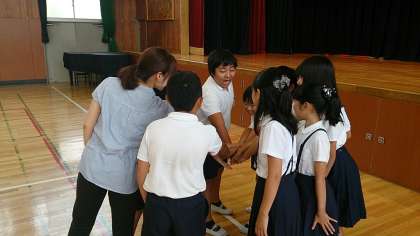 たてわり班で円になり、1年生から順に、