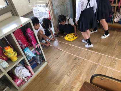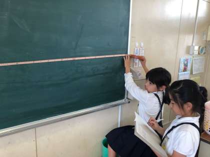 3年生の算数科では、まきじゃくを使って長いものの長さを測る学習をしています。