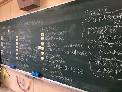 京セラドーム大阪付近を中心に探検した班の発表からは、周辺に大きな施設やバス停が多く集まっていることが分かりました。