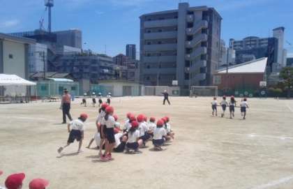 今日の練習は、「台風の目」の練習をしました。練習のときから白熱し、とてもいい勝負を繰り広げていました。練習日も残り少なくなってきました。子ども達は、暑い中とても頑張っています。本番も楽しみにしていてください!