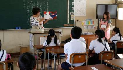 9月17日の朝の読書タイムの時間、4年生の教室には、よもよもの方々が来てくださりました。1組・2組それぞれで楽しいお話会を行ってもらいました。