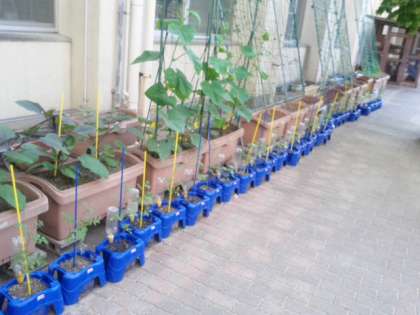 1年生の「あさがお」、2年生の「ミニトマト・きゅうり・なす」は順調に生長しています。