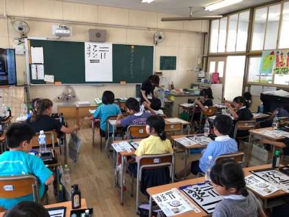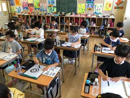 最後は、線の太さを工夫して、墨の線だけででかたつむりを書きました。これから漢字やひらがなにも挑戦していきます。今回はその基礎となる筆の運び方や道具の使い方をしっかりと学ぶことができました。