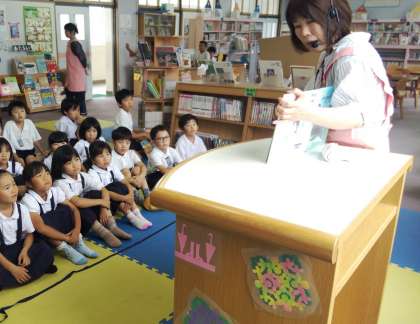 今日のお話は『わんぱくだんのかいていたんけん』です。絵本の中に登場するドルフィンランドは夢のような楽しい場所。ドルフィンランドのページが開くと「うわー!」という歓声があがっていました。本校でももうすぐ水泳の学習が始まります。楽しい水泳の時間を子どもたちは心待ちにしていることでしょう。